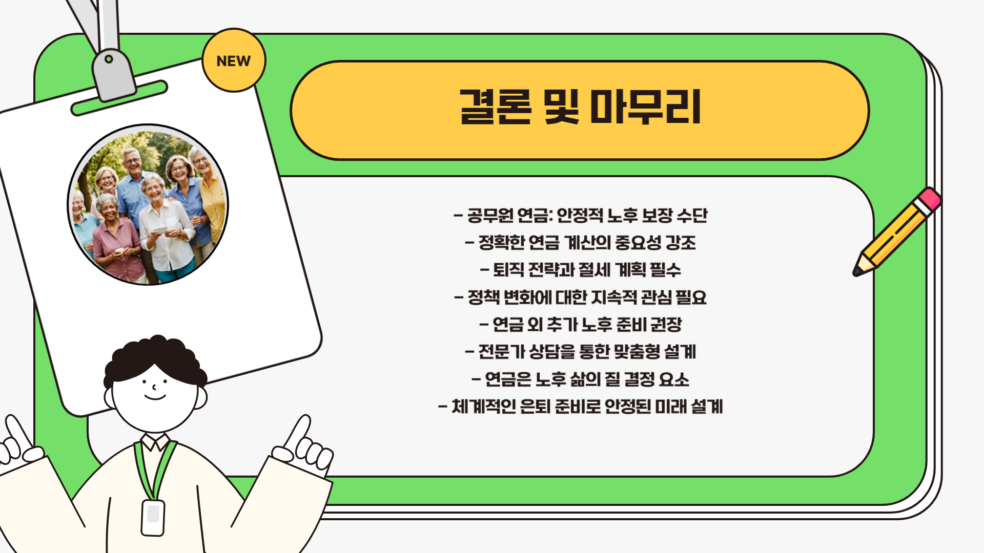 공무원 연금 제도는 사회적 변화나 정치적 이슈에 따라 구조가 개편될 수 있는 영역입니다.