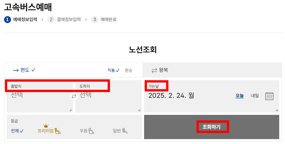 1-1.출발지,도착지,가는날 선택 후 조회하기 버튼 누르기