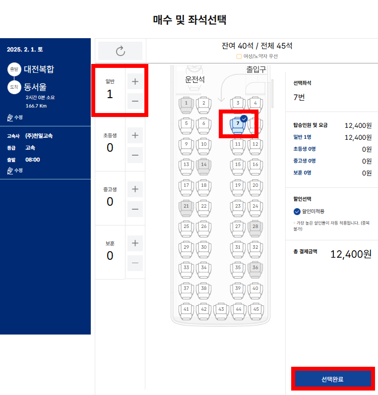 1-3. 매수 및 좌석선택 후 선택완료 버튼 누르기