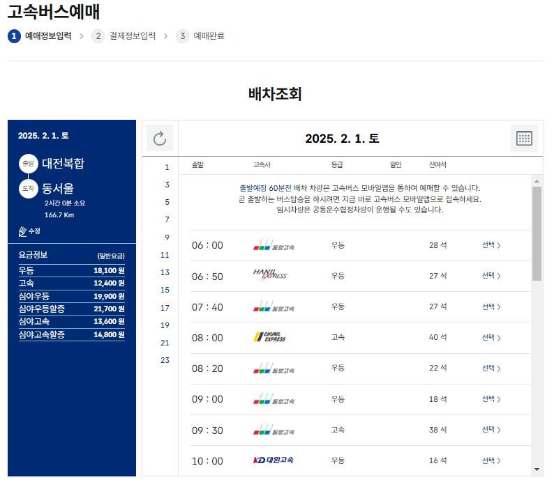 유성 고속버스 터미널 시간표 확인 및 예매방법