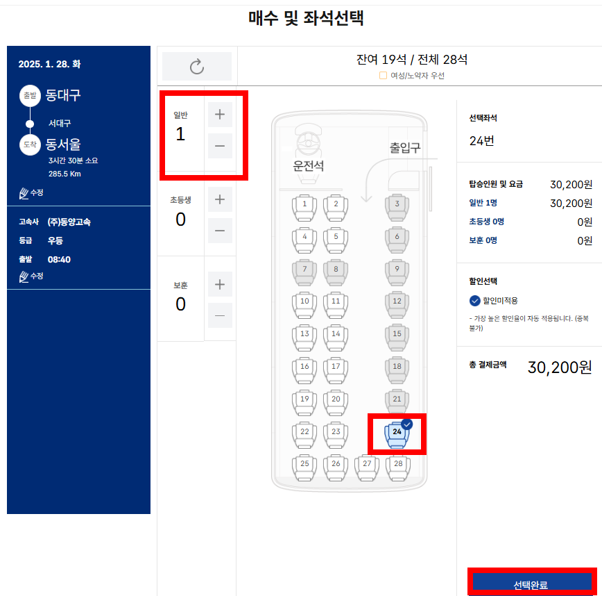 - 좌석 선택: 미리 예매하면 창가 좌석 등 원하는 자리 확보 가능!