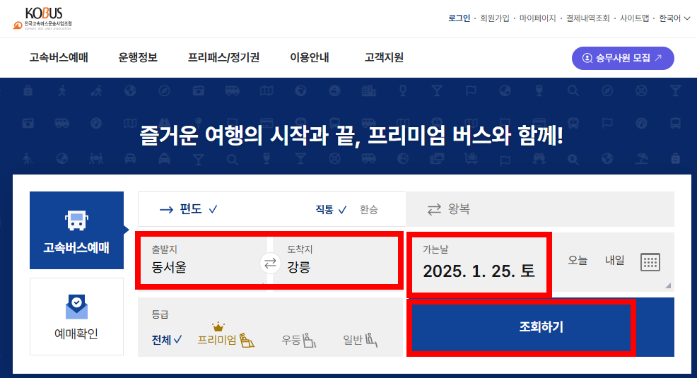 모바일 티켓이나 출력된 예매표를 미리 준비하세요. 실시간 좌석 변동이 있을 수 있으니 탑승 10분 전 도착 권장.