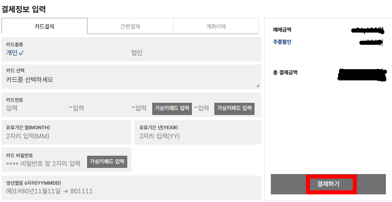 1-4. 결제 정보 입력 후 결제 학 버튼 누르기