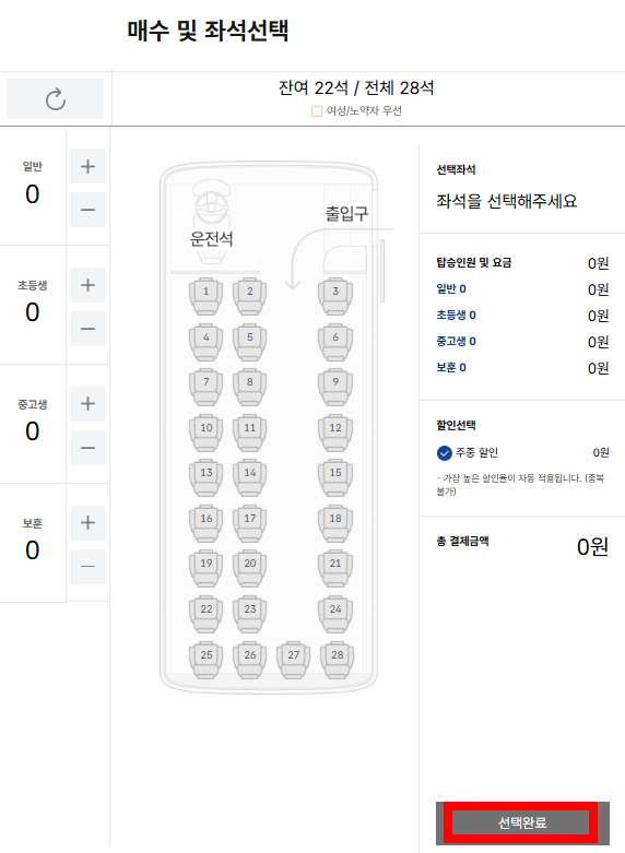 1-3. 매수 및 좌석 확인 후 선택 완료 버튼 누르기