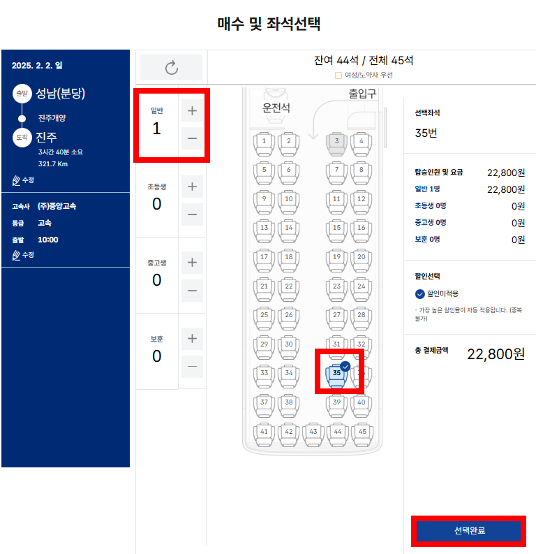 1-3. 매수 및 좌석선택 후 선택완료 버튼 누르기