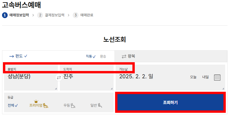 1-1. 출발지,도착지,가는날 선택 후 조회하기 버튼 누르기