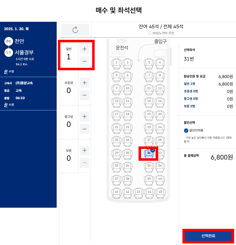 인기 있는 노선은 미리 예약하여 창가 좌석이나 편안한 좌석을 확보하세요. - 할인 혜택 확인