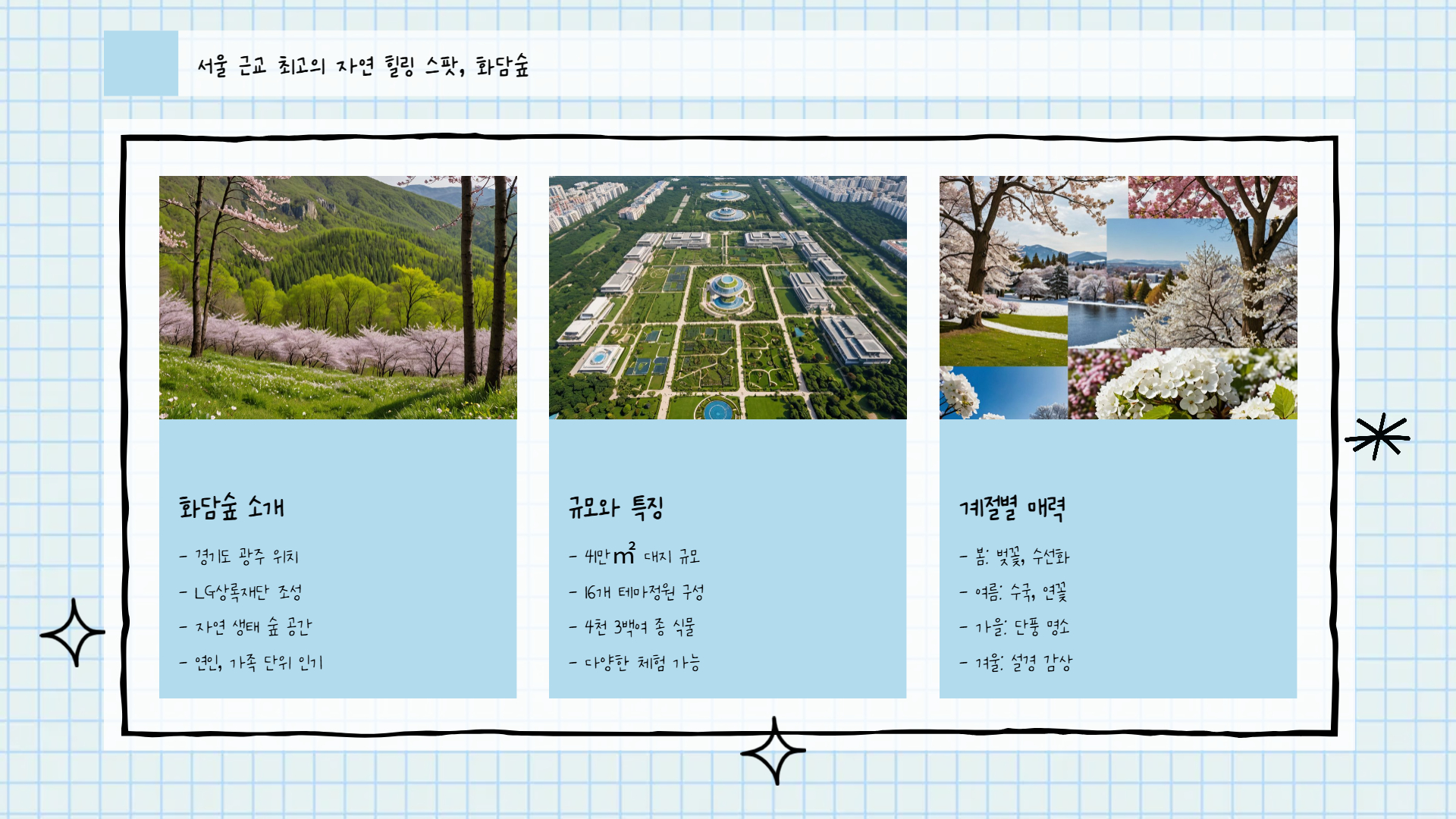 경기도 광주에 위치한 ‘화담숲’은 LG상록재단이 조성한 자연 생태 숲으로, 약 41만㎡ 규모의 대지에 16개의 테마정원이 조성되어 있어요.