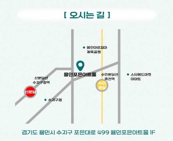 - 분당선 죽전역(단국대) 1번 출구 (도보 450M)